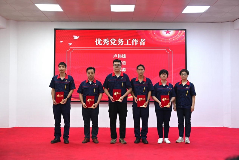 大會對“兩優一先”進行了表彰,授予江家明等12名同志“優秀共產黨員”稱號;授予盧偉雄等5名同志“優秀黨務工作者”稱號;授予中共中山市廣重鑄軋鋼有限公司支部委員會“先進黨支部”稱號。